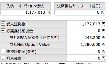 まだまだ売りのサインは出ていないので、プットを売ってみます。ボラが低いのでまだ1枚だけとします。