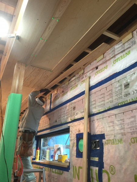 天井の下地となります。凹凸のないように注意して施工します。