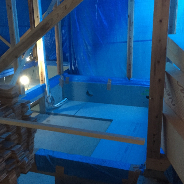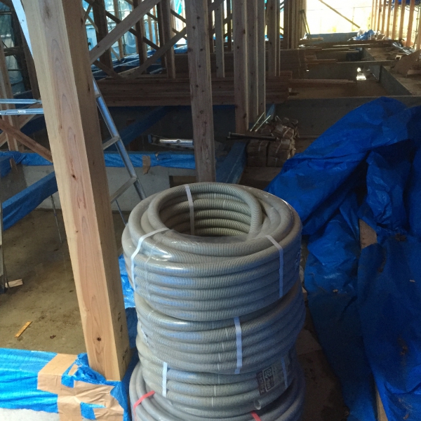 下のコンクリート枠に断熱材と何やら穴ぼこ、エアコンのものらしい配管がありました。