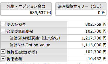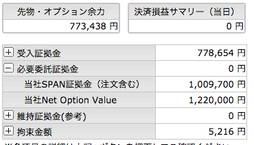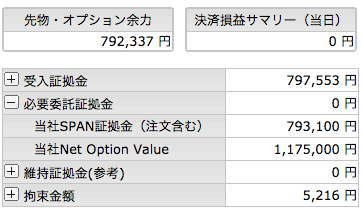 金曜日の夜間にまずはコールもプットも売り2枚ずつとしてニュートラルとしました。