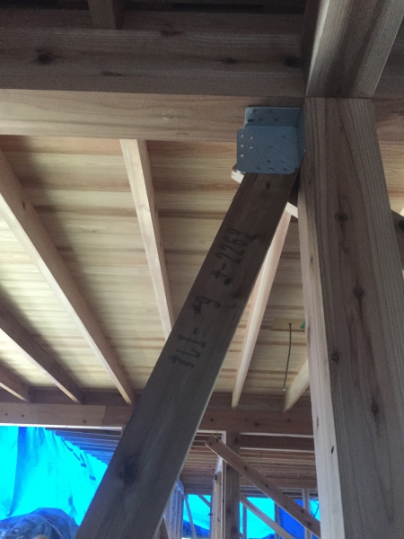 筋交っていうんですよね? どんどん壁に埋め込まれて補強具もあまり見えないように内側につけられていました。