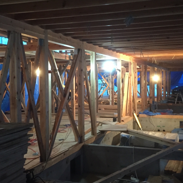 一部床の下地が張っているところも出来ました。