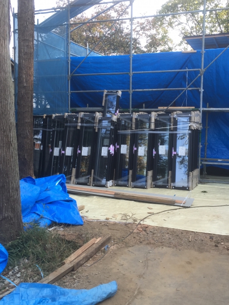窓が搬入されています。たくさん入るのですね。