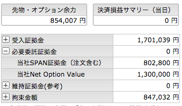 夜間に値を下げて、いつのまにか5C売りも50円で約定したメールが来ました。