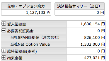 夜間に大きく上昇したので、プット側を利食いしてスライドしました。