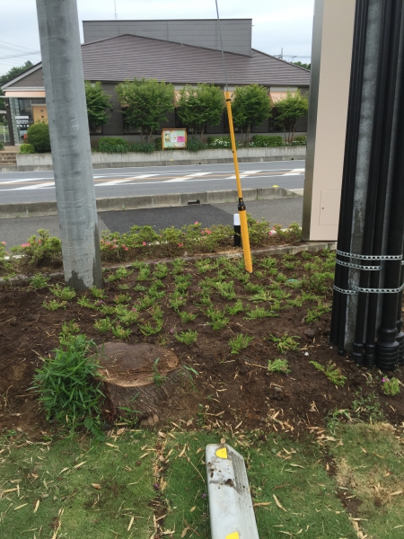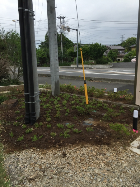 雑草対策も兼ねて電柱やら看板やらの裏の土地を掘り返しておいたので、まずは芝桜を植えてみた。