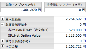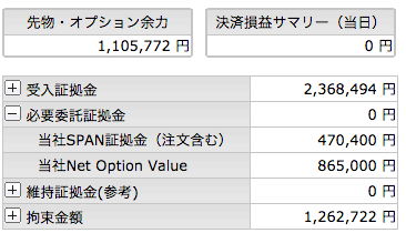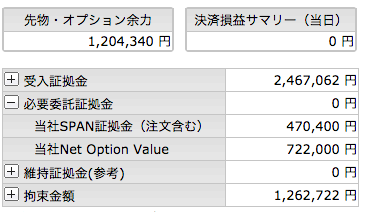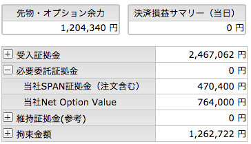 夜間に下げたところでプットの売りがLCに引っかかってしまいました。