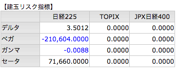 | 11Call | 10Call | 価格 | 10Put | 11Put |