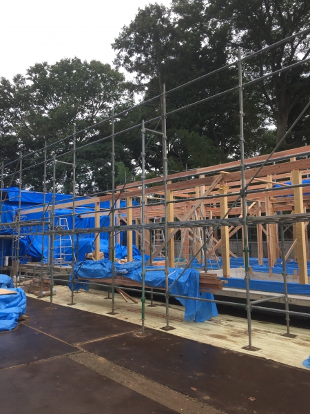 今週やっと晴れて、診療棟の骨組みが組み上がりました。